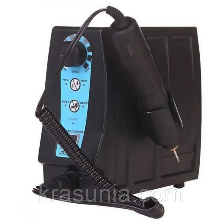 Фрезер JD 5500С зі швидкістю 35 000 обертів у хвилину та відсутністю вібрації користується великим попитом серед майстрів-професіоналів. Модель виконана у сучасному стильному дизайні, має високу якість комплектуючих: підшипники та двигун японського виробництва, що гарантує чітку та впевнену роботу мікродвигуна та довгий термін експлуатації. Фрезер призначений для апаратного манікюру, педикюру, корекції штучних нігтів. Висока потужність апарату дає можливість обробляти грубі ділянки шкіри, мозолі та жорсткі натоптиші. Фрезер можна застосовувати експлуатації у салонах і для домашнього вжитку. Високу якість даної моделі підтверджують CE&ROH міжнародні сертифікати.
