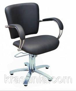 Крісло Martin на гідравлічному підйомнику з функцією блокування від обертання, що дозволяє піднімати сидить у кріслі клієнта за лічені секунди легким натисканням педалі ногою майстра виготовлено з якісного і міцного шкірозамінника, стійкого до різних хімічних препаратів.