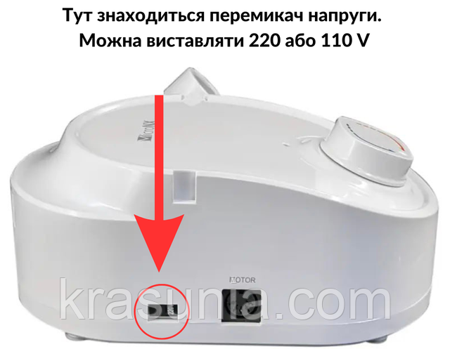 - Невисока швидкість роботи зробить процедуру максимально зручною для клієнта та продовжить термін експлуатації насадок та самого фрезера.