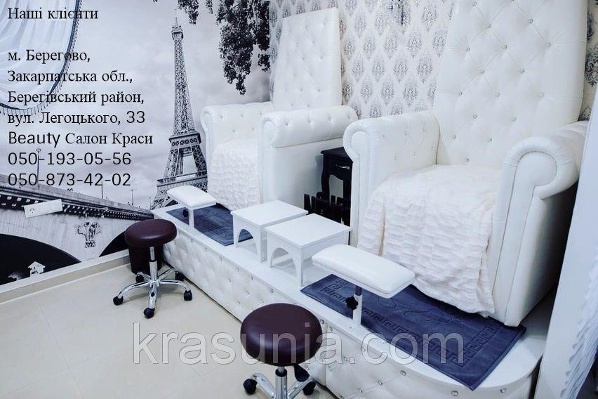 Педикюрное кресло Трон Ice Queen, Стульчик мастера для педикюра Kodi, Подставка для экспресс маникюра под Трон, Подставка для педикюра на пневмодъемнике